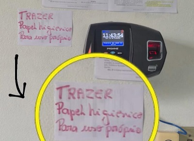 Um aviso fixado ao lado do relógio …