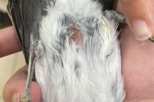 Encaminhadas ao Centro de Triagem e Recuperação de Animais Silvestres de São Paulo (CETRAS/SP), as aves foram examinadas por especialistas, que identificaram alterações como empenamento deficitário, hiperqueratose (espessamento anormal da pele), onicogrifose (crescimento exagerado das unhas), além de sinais de pododermatite, inflamação dolorosa nos pés geralmente causada por puleiros sujos ou inadequados. Em uma das aves também foi detectado um lipoma, tumor benigno de gordura.