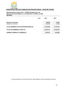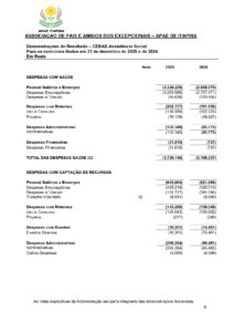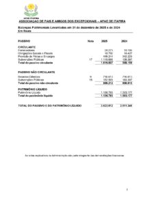 Balanço Patrimonial 2025 – Associação de Pais e Amigos dos Excepcionais de Itapira