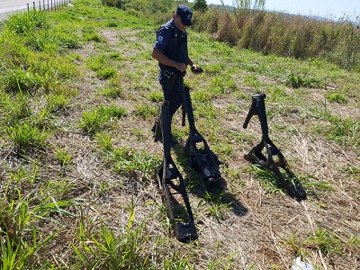 As equipes se deslocaram até o local indicado e, a cerca de dez metros da pista, em meio à vegetação, encontraram os quadros. Duas das motocicletas tinham a numeração de chassi preservada, o que permitiu a identificação dos veículos como produtos de furto.