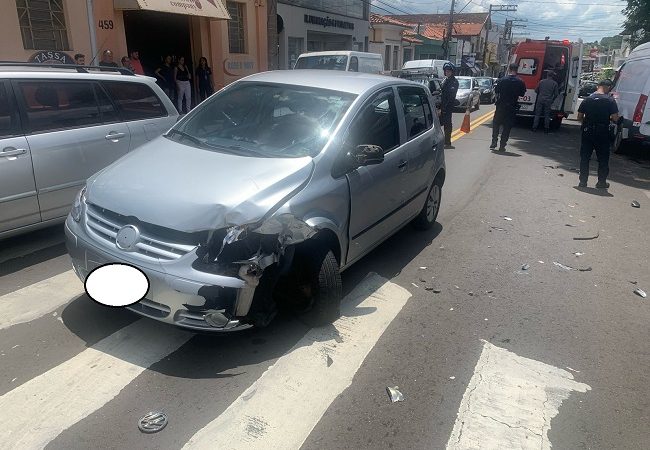 Motoboy passa reto em cruzamento e acerta carro