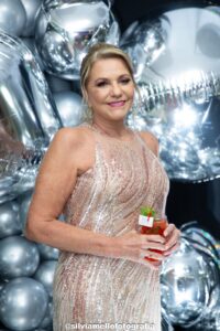 Foi com essa energia de viver e ser feliz que Mônica Moino Breda festejou 60 anos. As cores prata e preto predominaram no ambiente de disc. Ao seu lado o marido Sidney, e filha Monise e os netos, mais amigos próximos que levaram o abraço e votos de felicidades e sucesso. Buffet Santa Cruz, como sempre impecável, a Banda Old Classic manteve a pista de dança lotada. A Innovation Bartenders, com os barmens Jacu, Higor e equipe coloriram e agradaram com drinks incríveis, o ambiente foi decorado por Rafa Véspoli Design, e na organização do cerimonial, Letícia Iamarino arrasou.