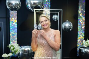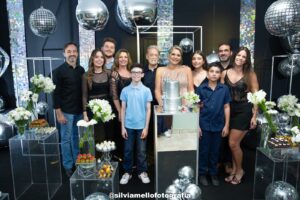 Foi com essa energia de viver e ser feliz que Mônica Moino Breda festejou 60 anos. As cores prata e preto predominaram no ambiente de disc. Ao seu lado o marido Sidney, e filha Monise e os netos, mais amigos próximos que levaram o abraço e votos de felicidades e sucesso. Buffet Santa Cruz, como sempre impecável, a Banda Old Classic manteve a pista de dança lotada. A Innovation Bartenders, com os barmens Jacu, Higor e equipe coloriram e agradaram com drinks incríveis, o ambiente foi decorado por Rafa Véspoli Design, e na organização do cerimonial, Letícia Iamarino arrasou.