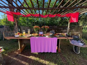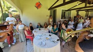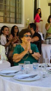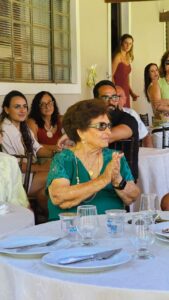 O encontro aconteceu na Chácara Cantinho do Céu, em um ambiente acolhedor e repleto de afeto. A trilha sonora ficou por conta da Banda da Casa das Artes, que apresentou um repertório cuidadosamente selecionado para a ocasião, proporcionando momentos de alegria e nostalgia. Um dos pontos altos da comemoração foi a emocionante participação dos sobrinhos Leonel e Mateus, que interpretaram a canção “La Barca” em uma homenagem tocante à aniversariante.