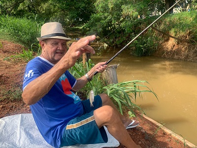 O pescador afirma que o principal peixe encontrado no local é o lambari. “Aqui dá lambari, só lambari”, disse, enquanto mostrava um bornal já cheio de peixes. Questionado sobre o destino da pesca, respondeu de forma direta: “Ah, a gente come ele, mas as vezes faz de isca para outros peixes”.
