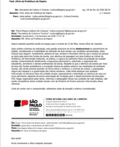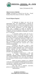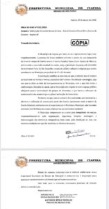 De acordo com os ofícios exibidos, dois pedidos foram encaminhados à Secretaria Estadual de Educação solicitando a liberação do campo da Escola Estadual Elvira Santos de Oliveira (ESO) como alternativa para montagem do parque. O primeiro foi entregue em janeiro pelo vice-prefeito, Mário da Fonseca durante agenda em São Paulo. Já o segundo foi protocolado em fevereiro pelo próprio prefeito Toninho Bellini. Ambos, no entanto, foram negados pelo Governo do Estado.