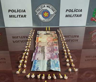 Durante a busca pessoal, os policiais encontraram R$ 142 em dinheiro com o suspeito. Em seguida, a equipe retornou até a residência citada na denúncia e realizou vistoria na calha do telhado, onde foram localizadas 71 pedras de crack, além de dois microtubos de cocaína