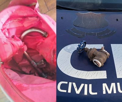 Na revista pessoal, foi encontrado na cintura do suspeito um registro geral de banheiro, que ele confessou ter acabado de furtar da residência. Conforme apurado no local, o indivíduo quebrou uma pia para retirar uma torneira e ainda abriu um buraco na parede para subtrair o registro hidráulico.
