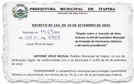 O caso chama atenção por envolver possível conflito com a legislação municipal de proteção ao patrimônio criada pelo próprio Toninho Bellini. A Lei nº 6.291 de 2023 estabelece diretrizes claras para a preservação de bens de valor histórico, cultural, natural e paisagístico no município. Entre seus principais pontos, a lei determina a proteção tanto de bens materiais quanto imateriais, além de prever instrumentos e procedimentos para evitar a descaracterização de estruturas históricas.