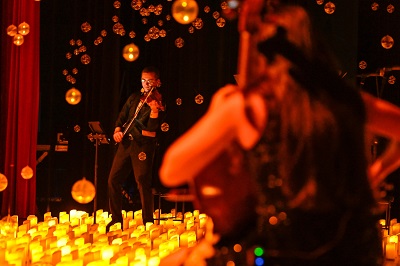 A singularidade deste evento reside em sua capacidade de transformar completamente o espaço do teatro, evocando a sensação de estar sob um céu estrelado. Bolas de Natal com luz cuidadosamente posicionadas iluminam o ambiente, criando uma cena celestial que intensifica a experiência sensorial dos espectadores. Este cenário não apenas eleva o clima do concerto, mas também serve como um convite para que o público mergulhe profundamente na música.