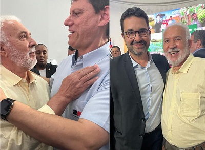 Noé Massari com o governador Tarcísio de Freitas e com o secretário Estadual de Agricultura, Geraldo Melo Filho (Divulgação)