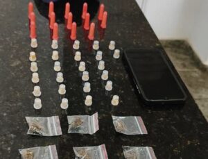 Diante das informações de que o entorpecente estaria escondido nas proximidades, foi acionada a equipe do Canil da GCM. Com o auxílio do cão farejador Zeus, os agentes localizaram mais drogas em uma praça próxima: sete pinos de cocaína idênticos aos já apreendidos, além de 26 microtubos contendo crack e seis porções de maconha embaladas para venda.