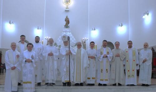 A celebração, que também contou com a presença de seminaristas, padres e inúmeros fiéis, foi acompanhada de momentos de emoção e reconhecimento por uma trajetória marcada pela fé e pelo serviço à comunidade.