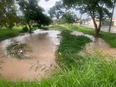 Um dos pontos mais críticos foi o córrego que corta os bairros Nosso Teto e Assad Alcici. Em alguns trechos, o volume de água fez com que o córrego transbordasse, invadindo vias públicas e chegando até a porta de residências, o que gerou apreensão entre os moradores da região.